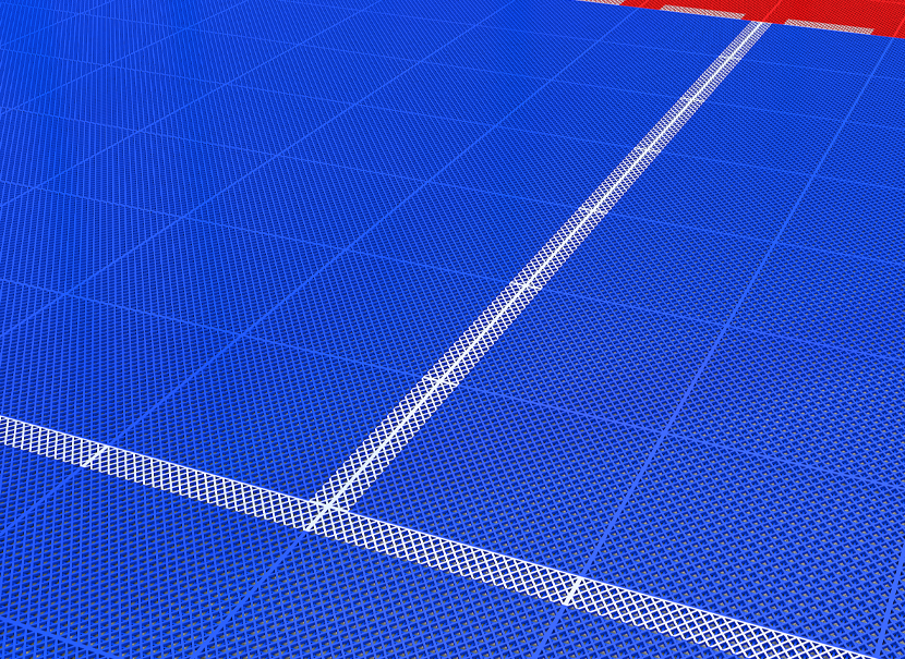 Le système de revêtement standard du modèle Origin Roofed est un revêtement sportif en PVC modulaire (30 × 30 cm emboîtables). Ce revêtement offre un drainage rapide, une haute résistance au glissement et une grande durabilité. En option, un gazon synthétique amélioré aux UV de 11 à 13 mm peut également être appliqué.