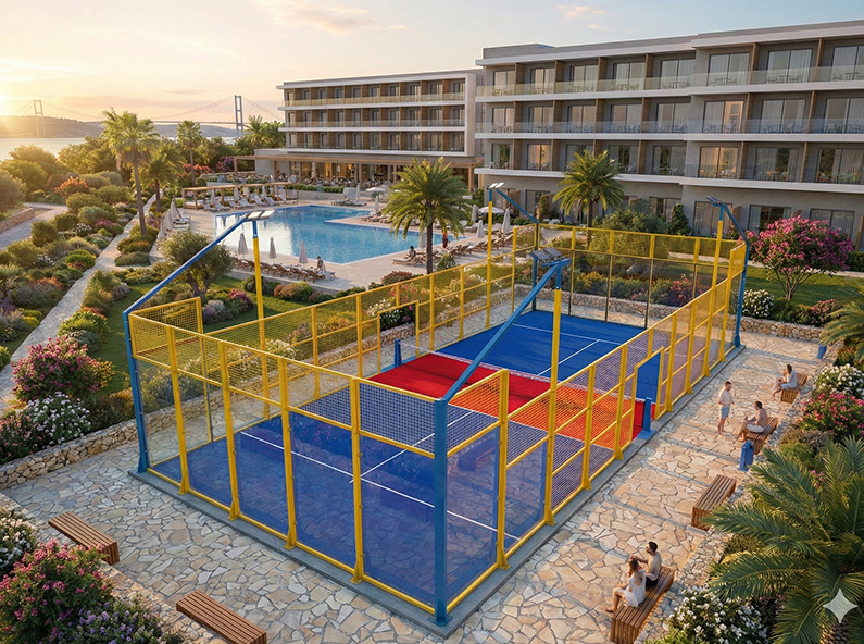 Projet d’1 terrain de Padbol Origin à Istanbul, réalisé selon les normes internationales avec structure en acier galvanisé.