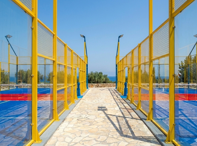 Projet clé en main de 2 terrains de padbol en RTCN, réalisés selon les normes internationales avec structure acier et éclairage LED.